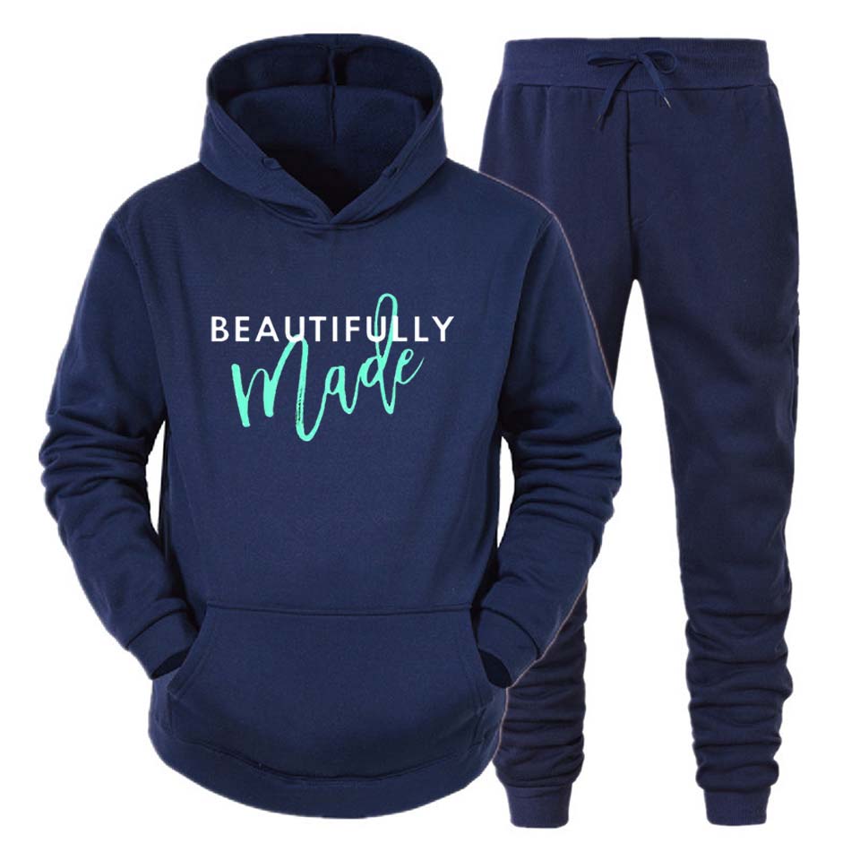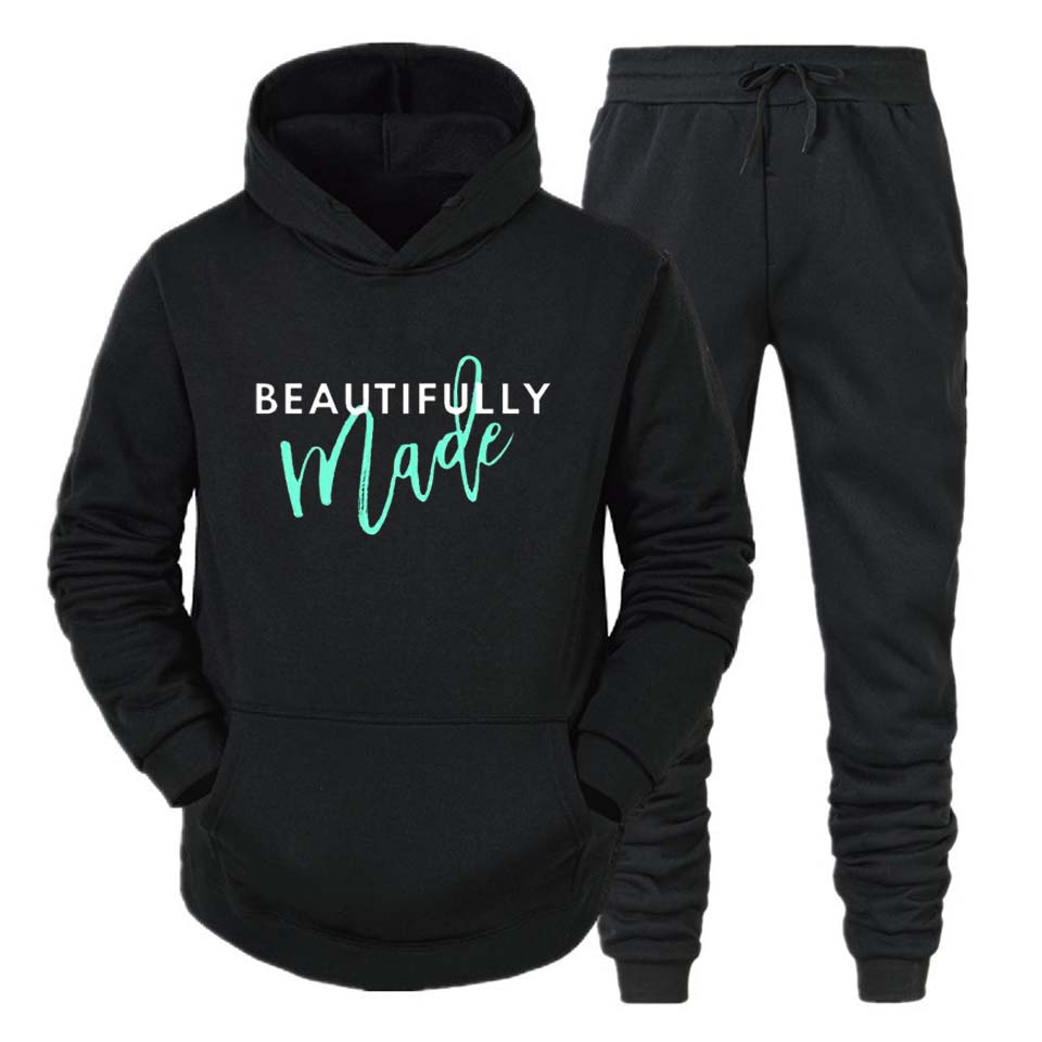 Modern Design: The sleek, modern silhouette fits perfectly, providing a flattering and trendy look. The hoodie comes with an adjustable drawstring for added style and function, while the matching track pants feature an elastic waistband for a comfortable, customizable fit.