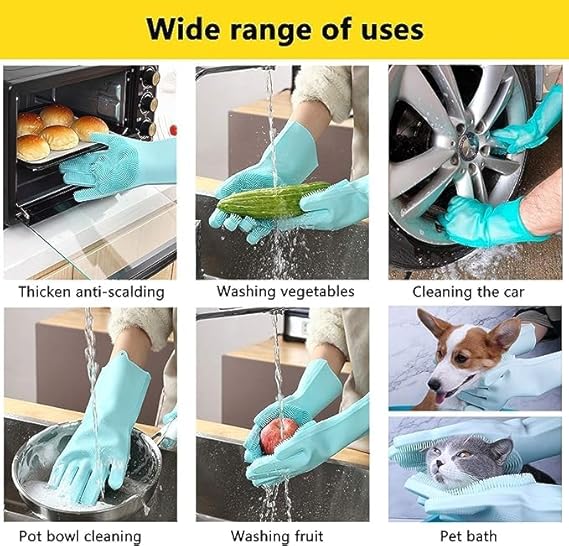 Turn everyday scrubbing into a spellbinding breeze with our Magic Silicone Dish Washing Gloves For House Holds—the multitasking marvel your kitchen never knew it needed. Designed with the clever combo of sponge and glove, these silicon gloves clean like a dream and protect like armor.