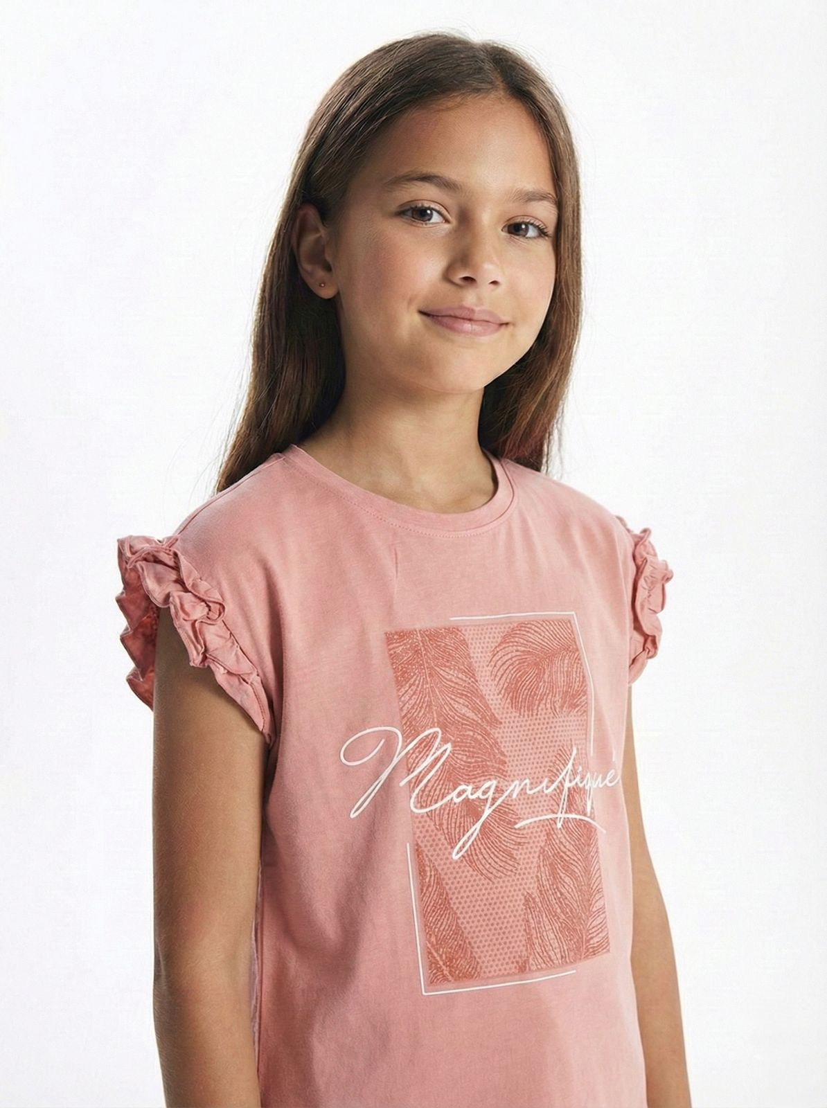 Featuring a stylish “Magnifique” print, this t-shirt brings a positive, lively vibe to your child’s wardrobe. The design reflects energy, confidence, and joy—perfect for girls who love to express themselves effortlessly.