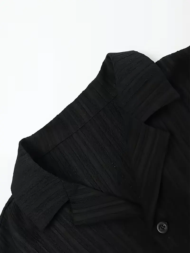 Upgrade your wardrobe with this Men Black Color Textured Short-Sleeve Shirt and Trouser Set — a clean, modern co-ord designed for comfort and effortless style. Featuring a subtle vertical textured pattern, this two-piece outfit delivers a premium look while staying lightweight and breathable for all-day wear.