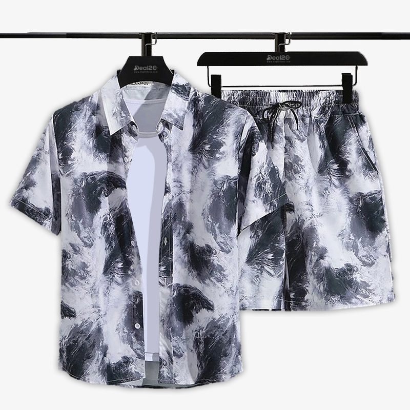 Dive into cool style with our men greyish abstract printed summer beach short suit. Crafted with breathable synthetic fabric in a regular fit, this summer beach short suit for men seamlessly blends casual comfort with a touch of Hawaiian flair, making it ideal for beach days, vacations, and relaxed outings.