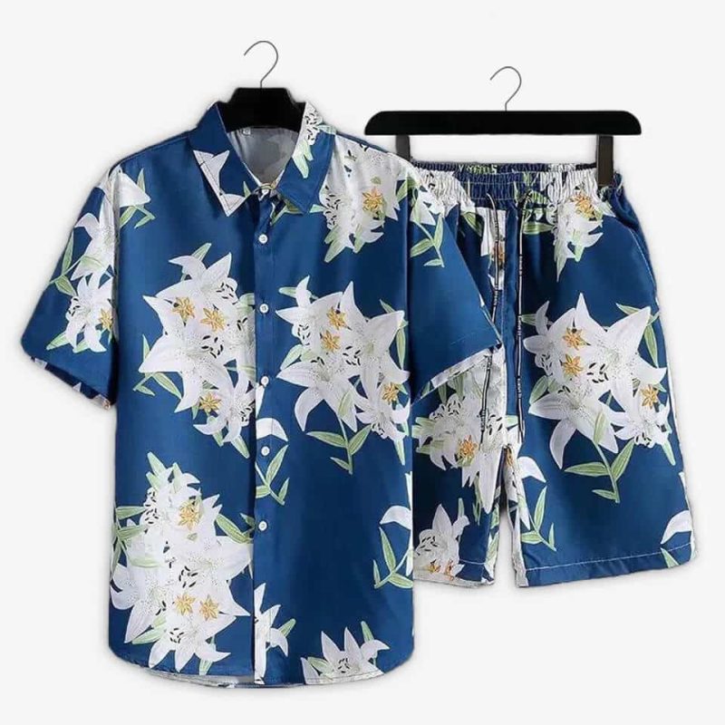 Refresh your summer wardrobe with our men jasmine floral printed summer short suit . Crafted from breathable synthetic fabric, this regular-fit floral summer short suit for men ensures all-day comfort. Ideal for beach outings, vacations, or casual hangouts, it blends a tropical Hawaiian style with effortless fashion.
