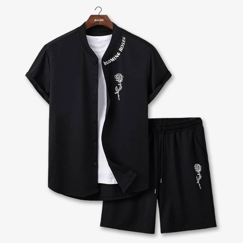 Mens Bloming Rose Mens Summer Beach Short Suit