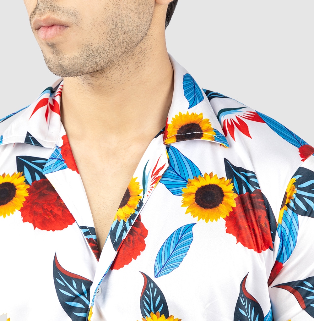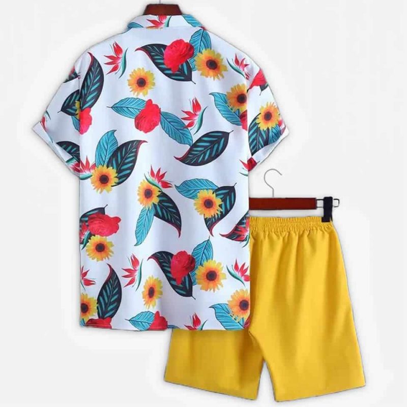 Step into summer with confidence in our mens sunflower printed summer short suit. Designed from lightweight synthetic fabric, this regular-fit outfit keeps you cool and stylish all day. Whether it’s a beach day, vacation, or casual outing, this sunflower printed summer short suit for men brings a fresh, standout look.