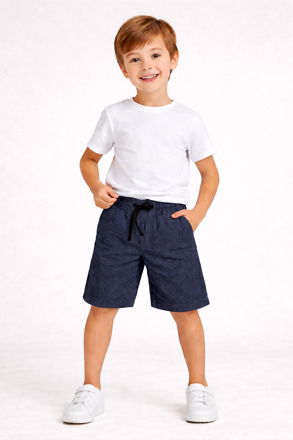 Be the first to review “Navy Blue Drawstring Pinstripe Summer Short for Kids”