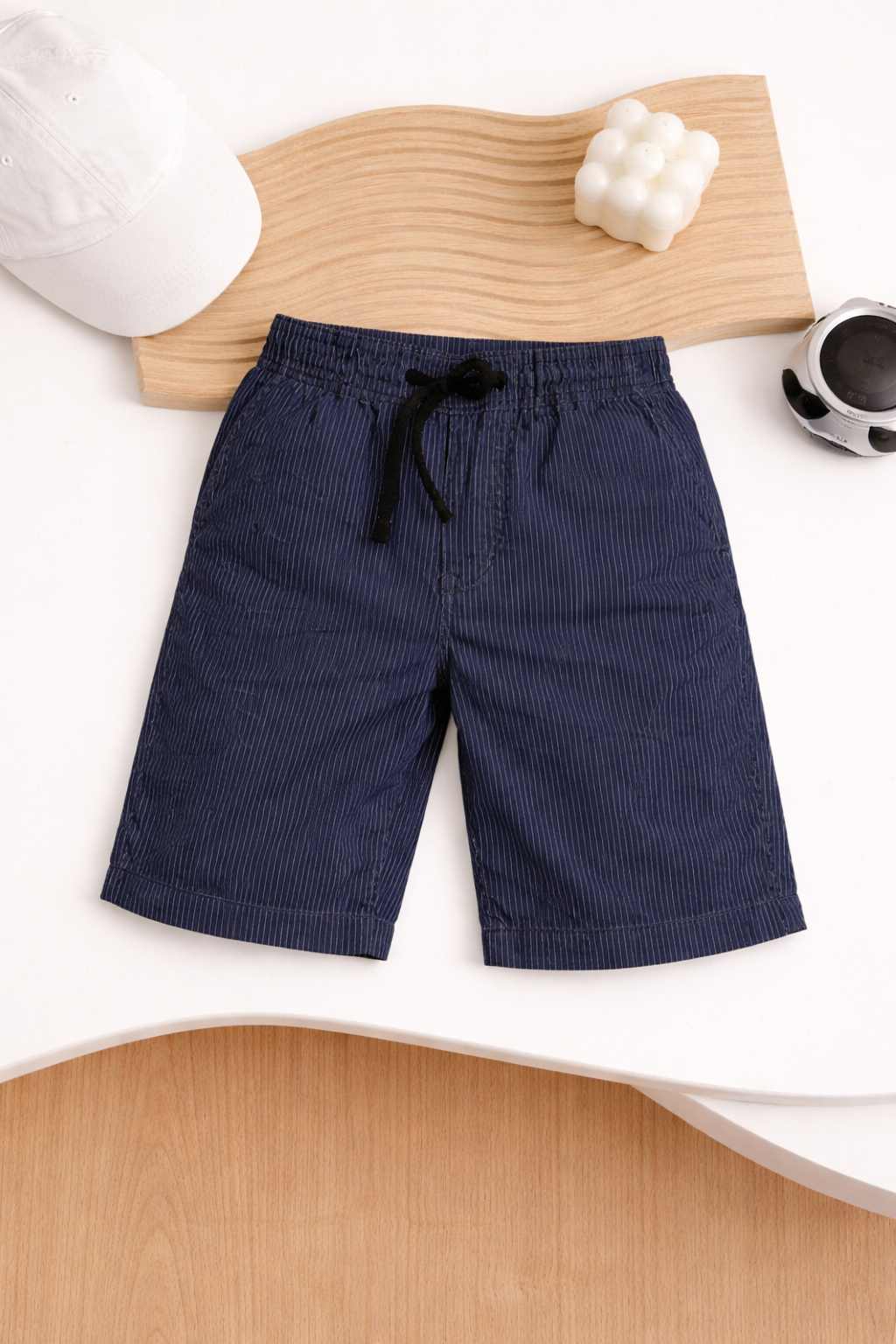 Navy Blue Drawstring Pinstripe Summer Short for Kids