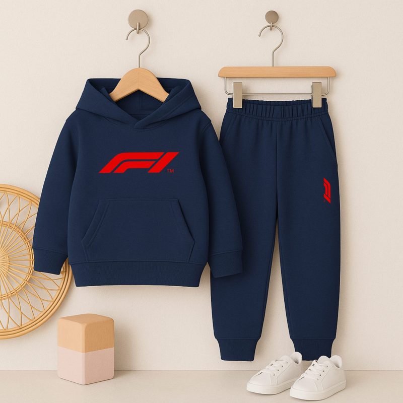 ✅ Navy F-1 Inspired Printed Hooded Tracksuit for Tween Kids