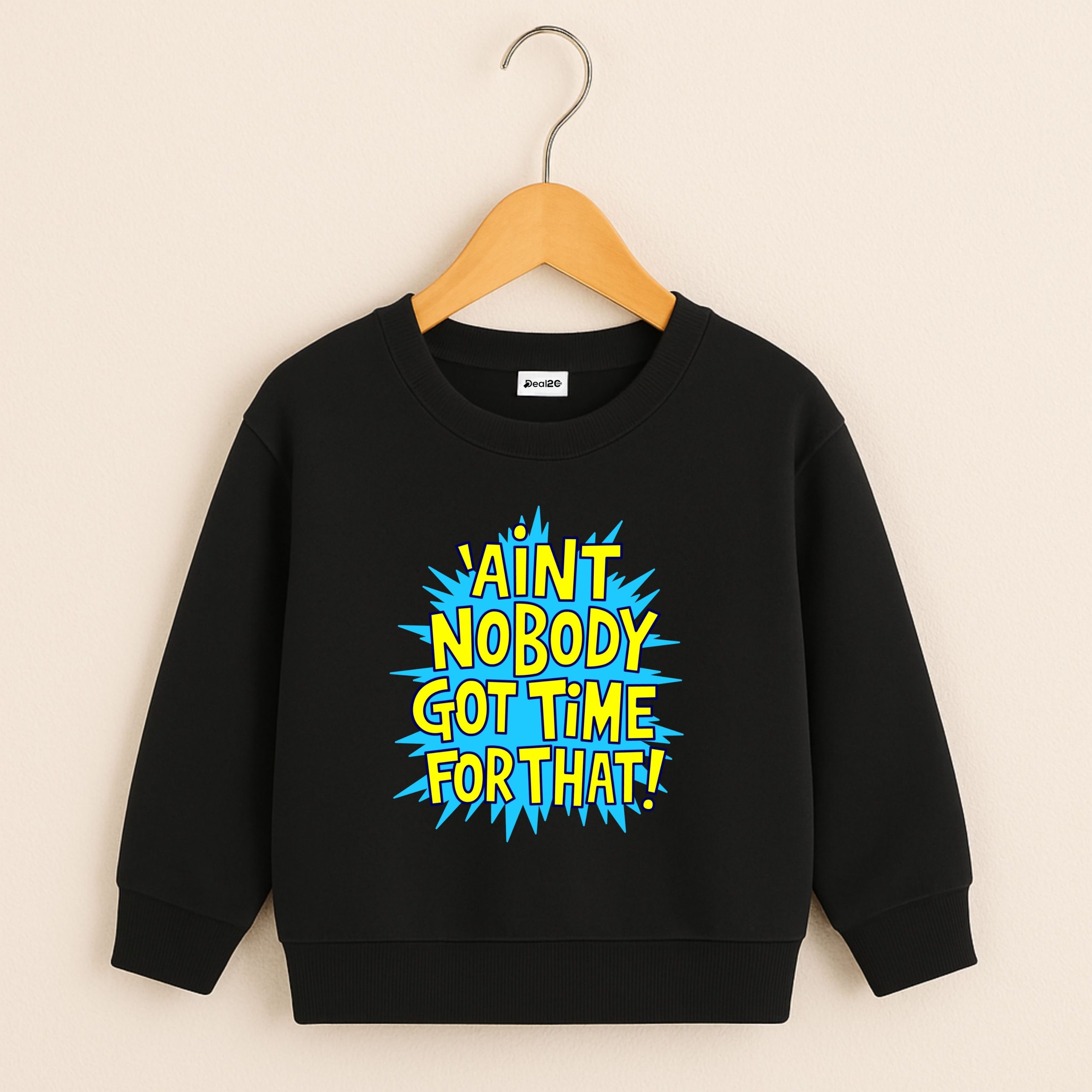 Bring smiles and comfort to your little one’s winter wardrobe with our Nobody for Time Printed Black Sweatshirt for Young Kids. Featuring a cool “Nobody for Time” print on a classic black base, this sweatshirt adds modern, playful vibes while keeping kids warm and comfortable. Perfect for school, playdates, or casual outings, it’s designed for everyday wear with a fresh and joyful look.