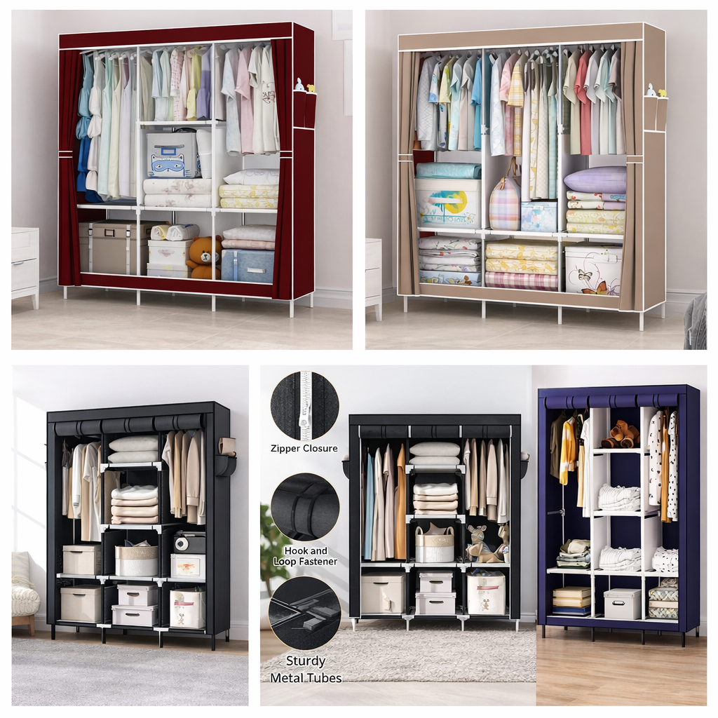 Upgrade your home storage with the Non‑woven Cloth Wardrobe – Folding Portable Storage Cabinet. Designed for convenience and durability, this wardrobe features a sturdy metal frame with non‑woven fabric cover, offering both hanging space for clothes and shelves for folded items.