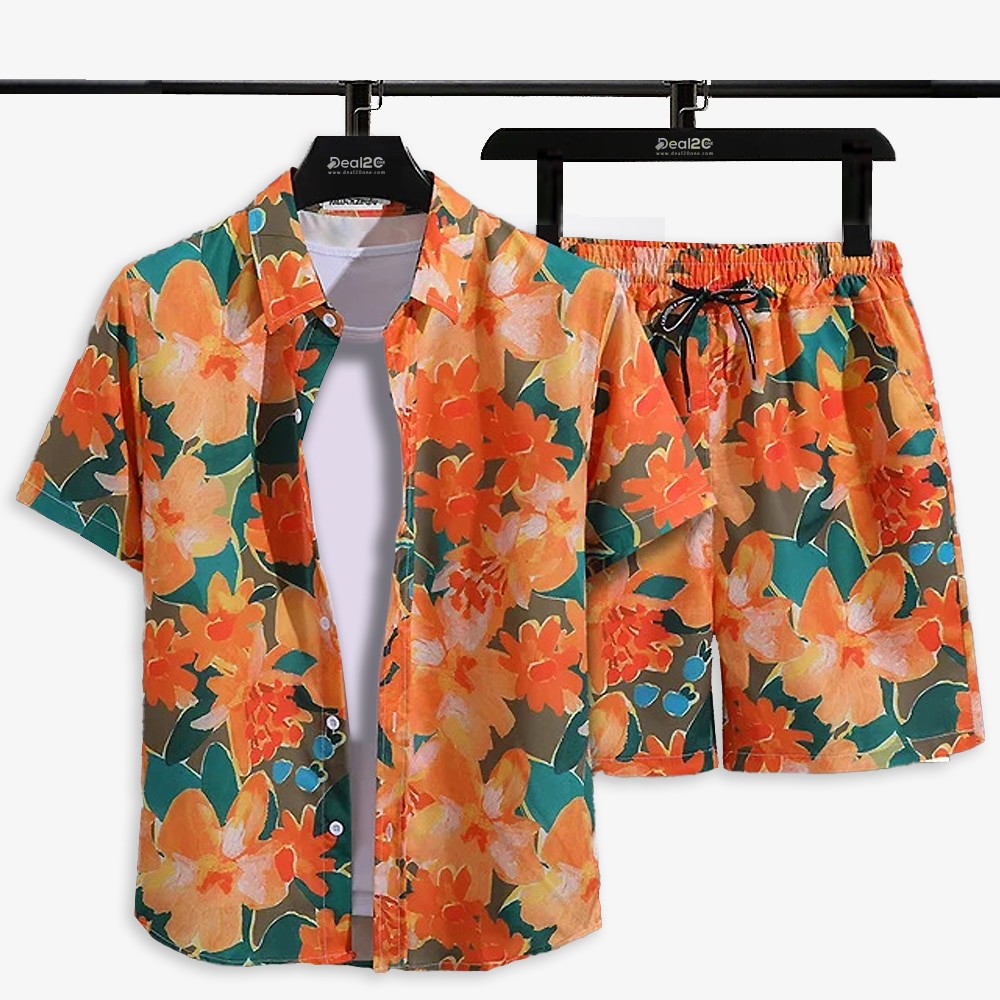 Get a Orange Rays Flower Printed Summer Beach Short Suit for just Rs 2199/- only