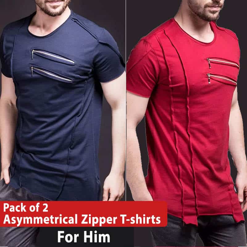 Get Pack of 2 Asymmetrical Zipper T-shirts in just Rs 999/- only