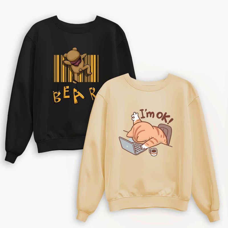 Pack of 2 Bear I’m Ok Printed Sweatshirt For Women