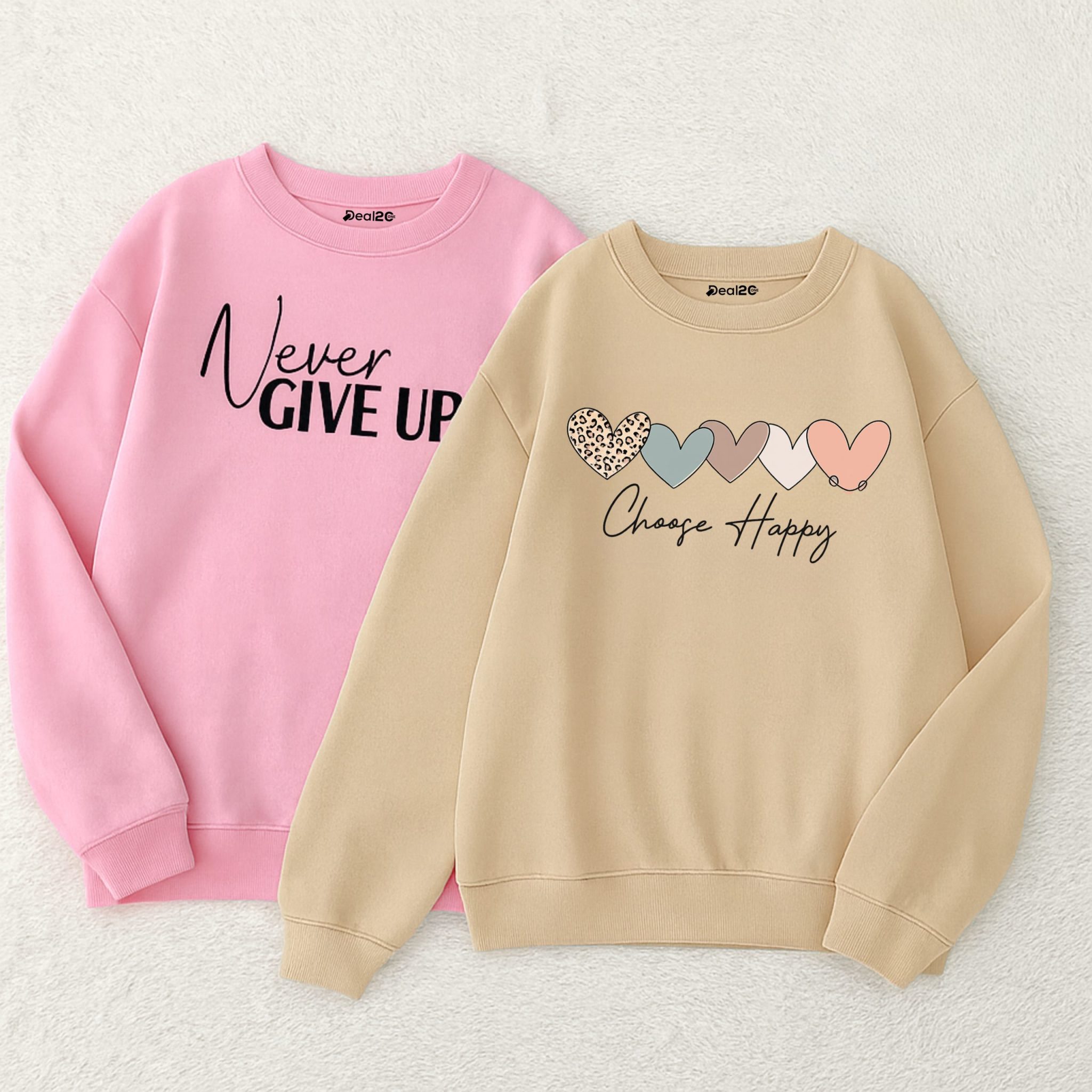 Pack of 2 Choose Happy Printed Sweatshirts for Women