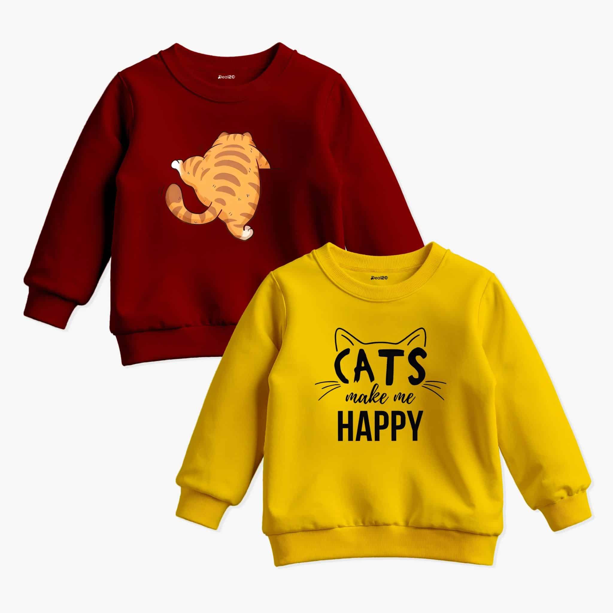 Pack of 2 Happy Cat Printed Sweatshirt For Kids