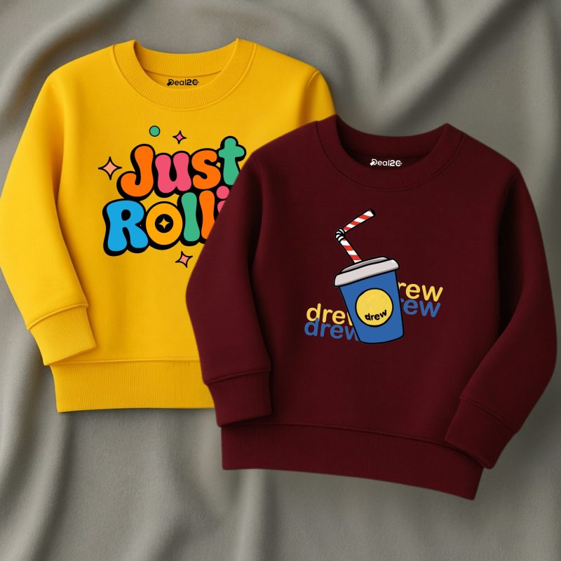 ✅ Pack of 2 Just Drew Printed Sweatshirts for Young Kids