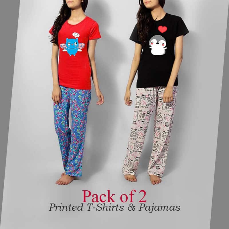 Get Pack of 2 Ladies Printed T-Shirts & Pajamas in just Rs 1199/- only