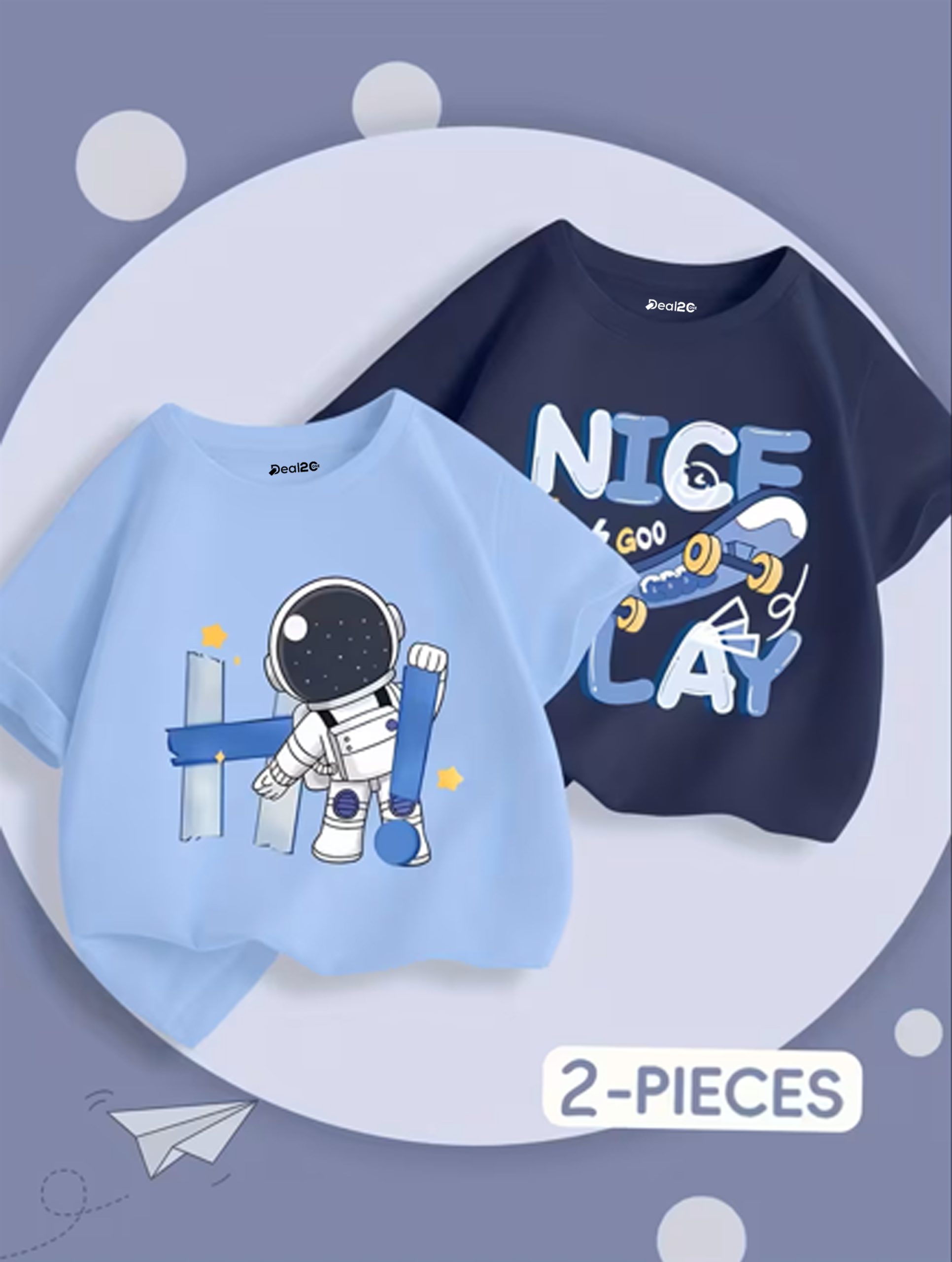 Pack of 2 Space & Skate Printed T Shirts For Young Kids