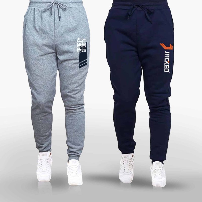 Upgrade your casual wardrobe with our Pack of 2 Sporty Jacked Printed Sweatpants for Men. Designed for comfort and style, these trousers are made from premium fleece material that keeps you warm while ensuring breathability. With a trendy printed design, these jogging trousers are perfect for any casual outing or lounging at home. The pack includes two unique designs, giving you more options for your everyday wear.