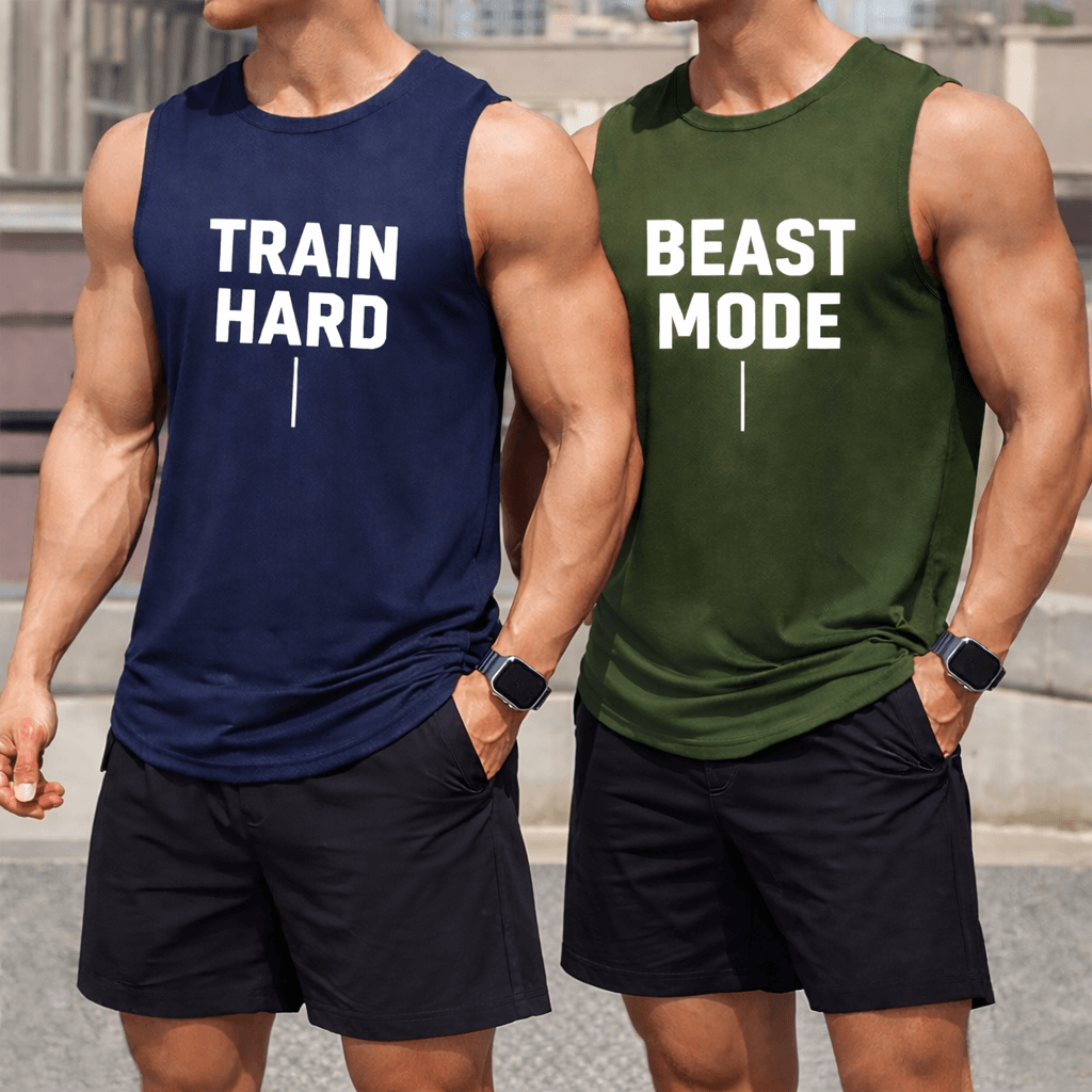 Upgrade your summer and workout wardrobe with this Pack of 2 Train Mode Printed Cross Border Athletic Tank Tops, designed for comfort, movement, and everyday performance. Made from soft, breathable jersey fabric, these tanks are ideal for gym sessions, training, running, or casual daily wear.