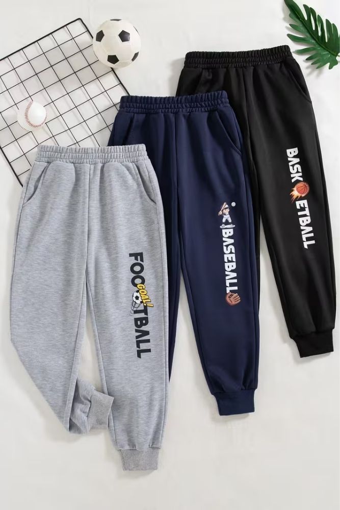 Step into comfort with a sporty twist—this premium pack of 3 printed trousers is made for kids who don’t sit still. With bold “Baseball Goal” prints, these trousers bring that playground energy straight into everyday wear. Clean, active, and full of life—just how kids should be.