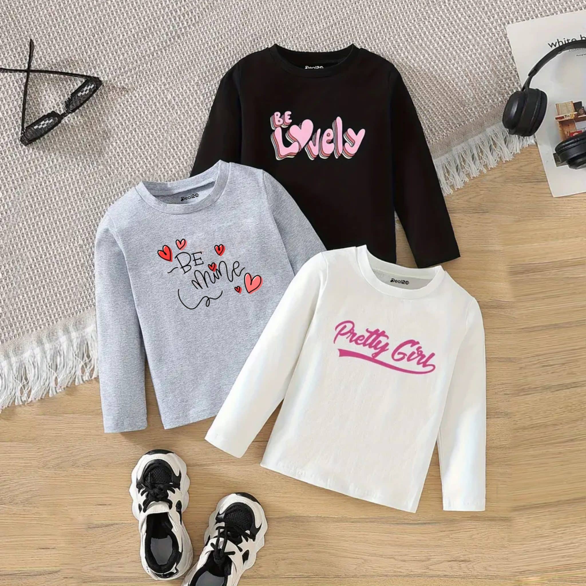 Pack of 3 Be Mine Lovely Printed Long Sleeve T-Shirts for Girls