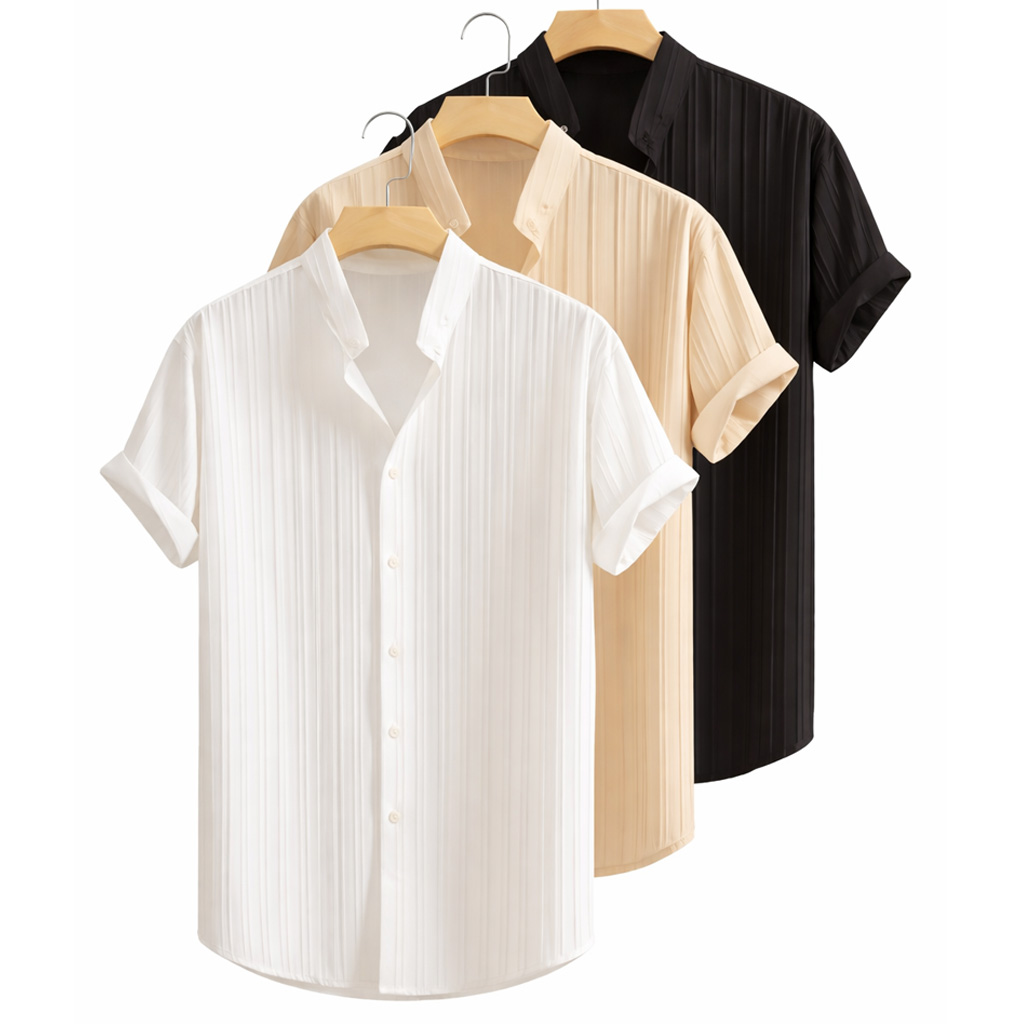 Upgrade your everyday style with our Pack of 3 Casual Solid Color Short Sleeve Jacquard Shirts, designed for a clean, modern look with premium texture. Featuring a subtle jacquard pattern, this shirt adds depth and character while keeping the overall appearance minimal and elegant — perfect for both casual outings and smart-casual wear.