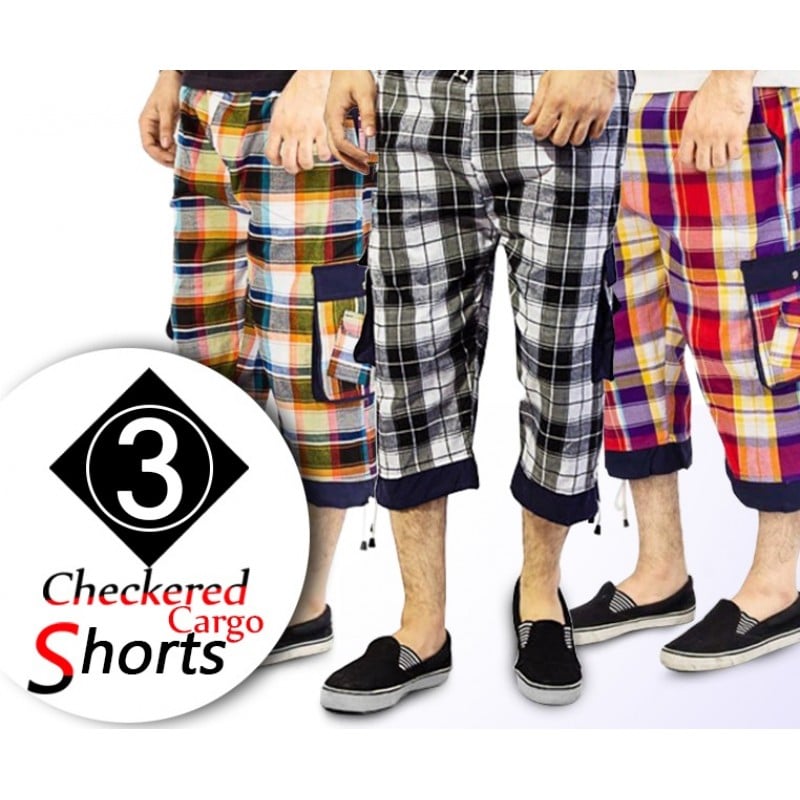 Get a Pack of 3 Checkered Cargo Shorts for just Rs 1199/- only