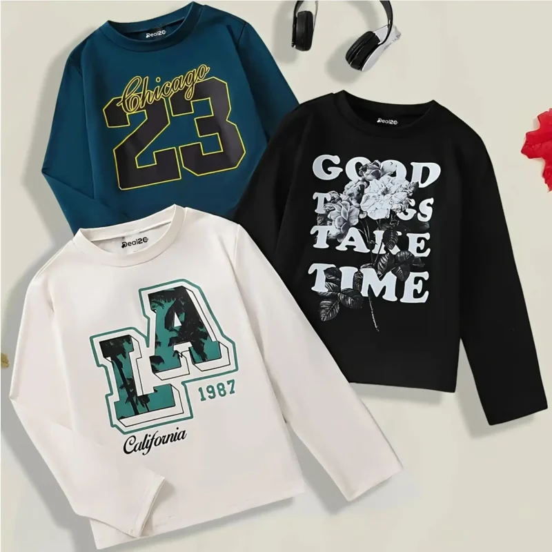 Pack of 3 Chicago Cali Time Printed Long Sleeve T-shirts For Tween Kids