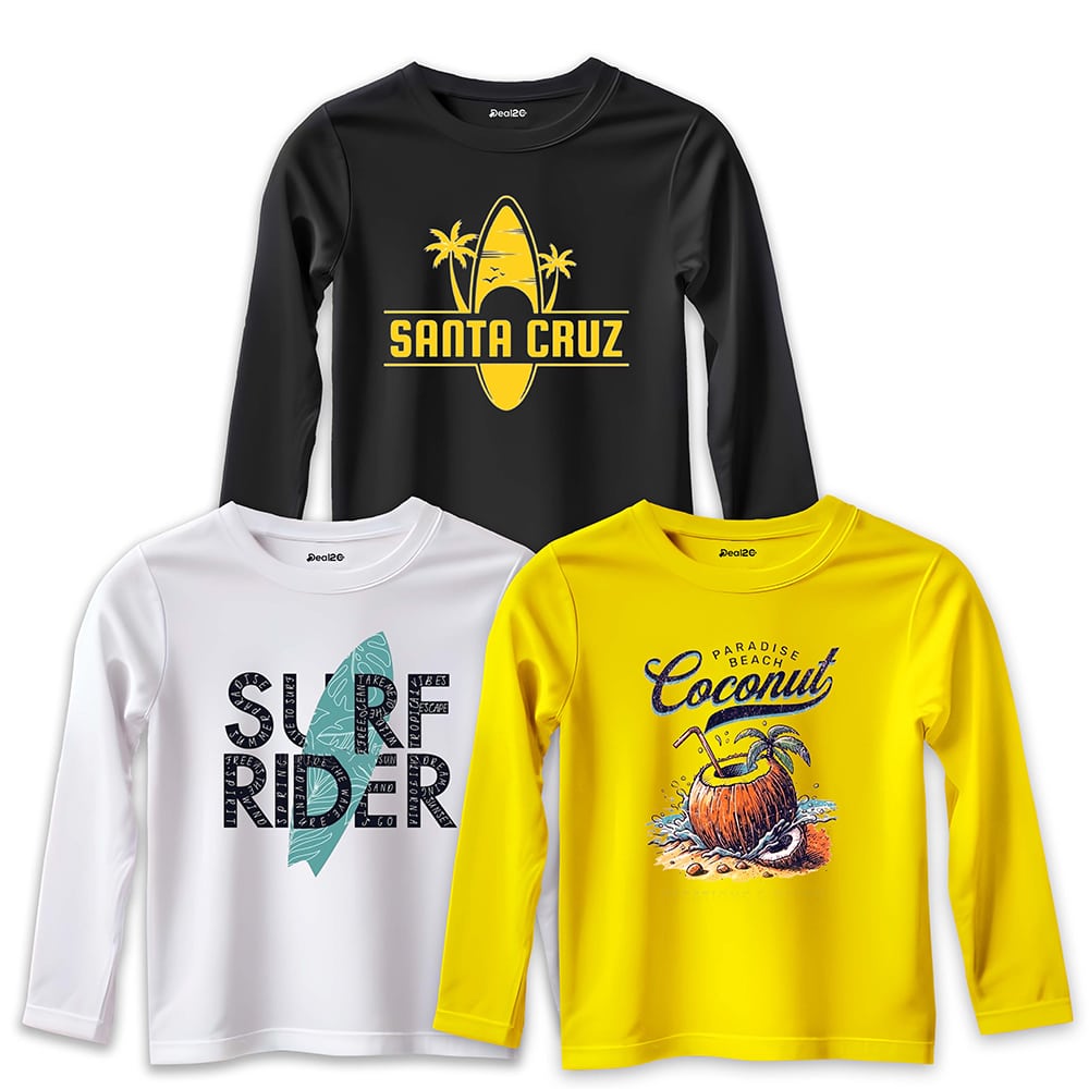 Pack of 3 Crus Coconut Rider Printed Long Sleeve T-Shirts For Tween Kids