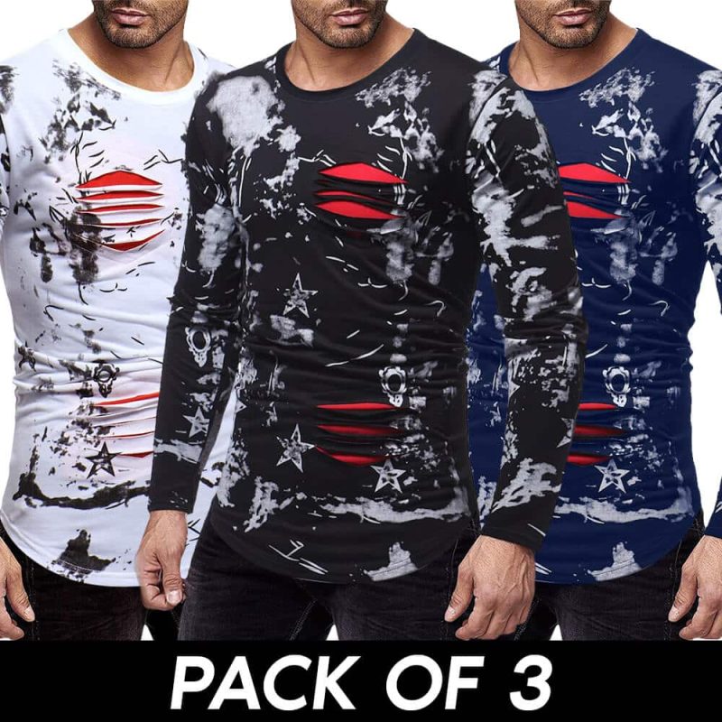 Get Pack of 3 Scratch Patch Hip Hop T-Shirt in just Rs 1199/- only