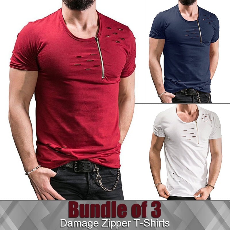 Get Pack of 3 Damage Zipper T-Shirt in just Rs 999/- only