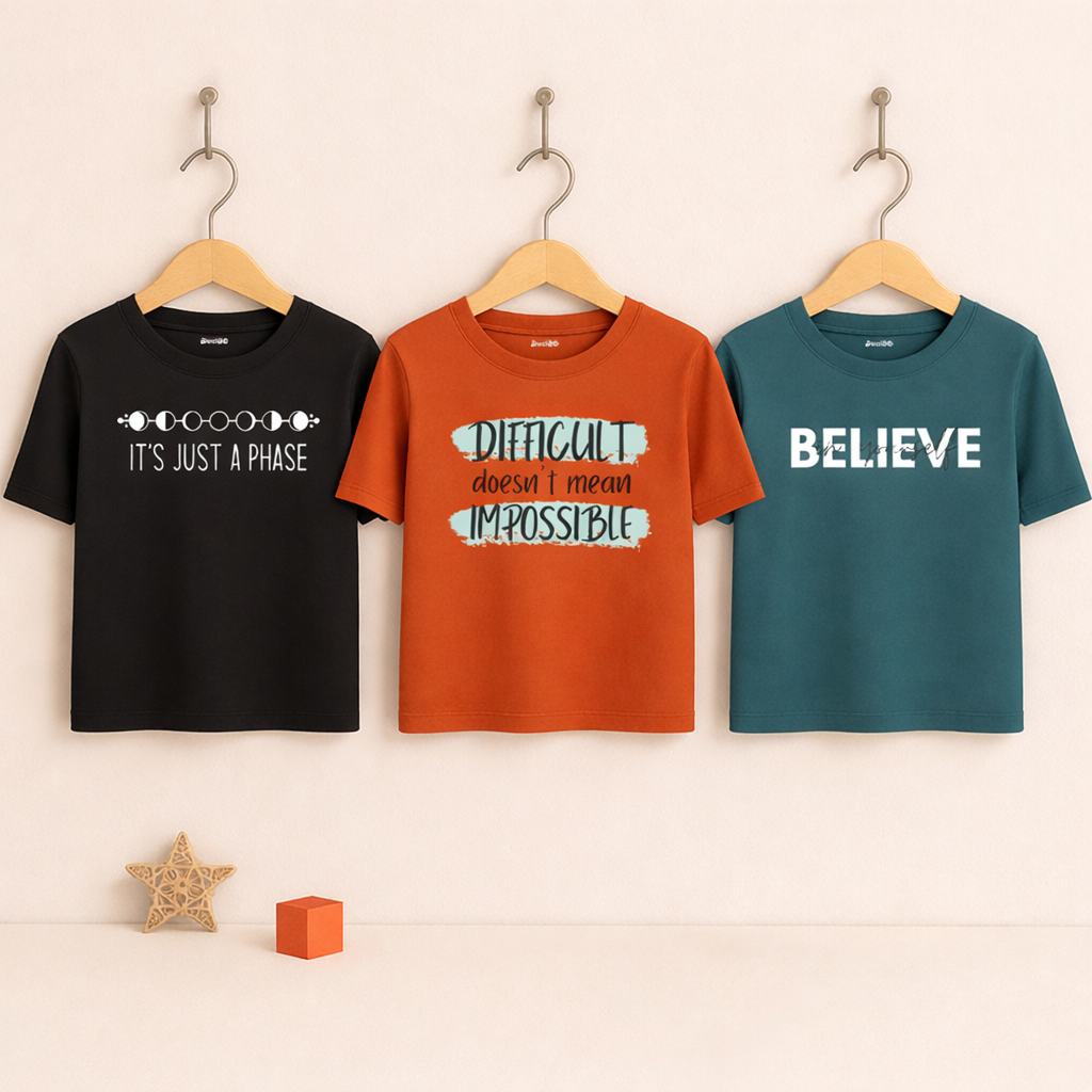 Upgrade your wardrobe with our exceptional Pack of 3 Difficult Phase Printed T Shirts For Tween Kids today and experience the perfect fusion of fashion and functionality. Stay stylish.