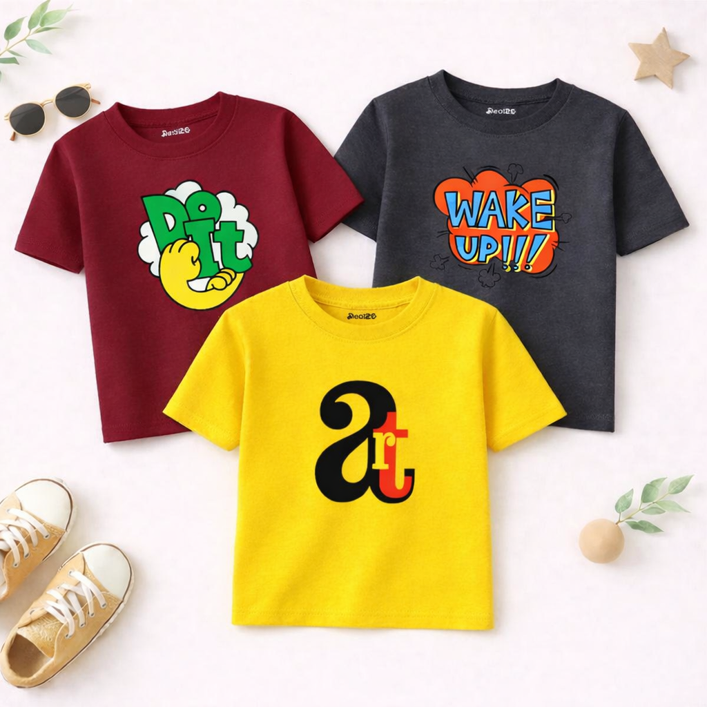 Upgrade your child’s wardrobe with our Pack of 3 Do It Art Printed T-Shirts For Boys today and enjoy the perfect fusion of fashion and functionality. Stay stylish.