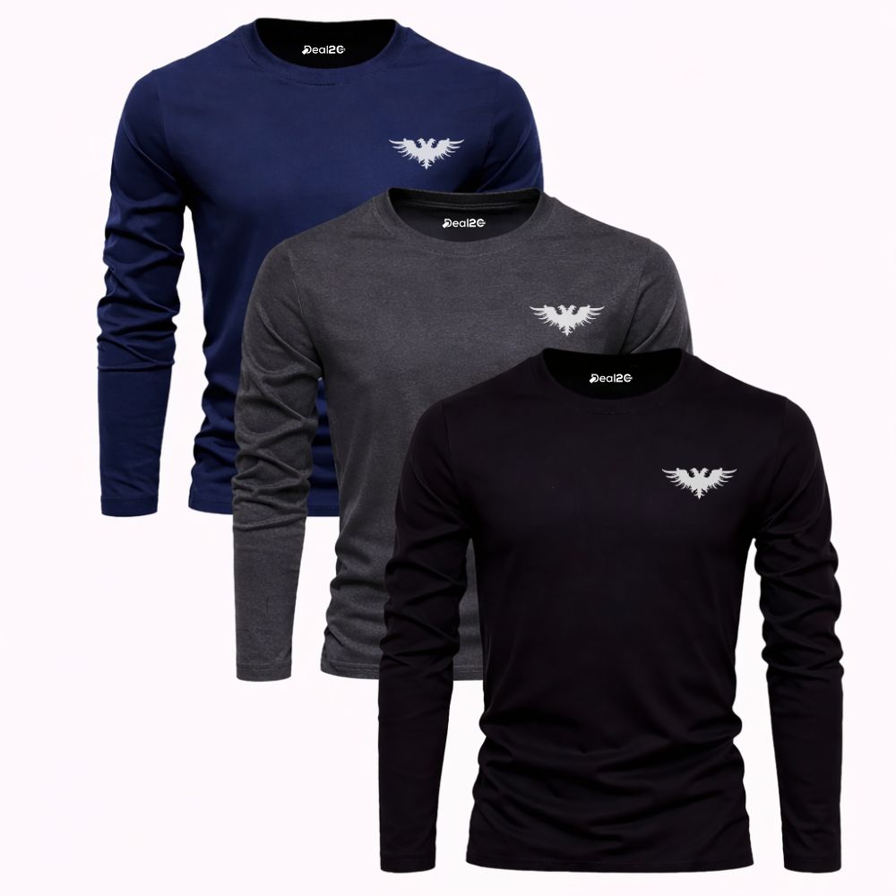 Pack of 3 Eagle Crew Printed Long Sleeve T-Shirts for Men is thoughtfully designed to enhance your everyday style with a bold and confident look. These long-sleeve t-shirts offer a comfortable fit and a clean, modern appearance, making them perfect for casual outings, daily wear, or relaxed weekends.