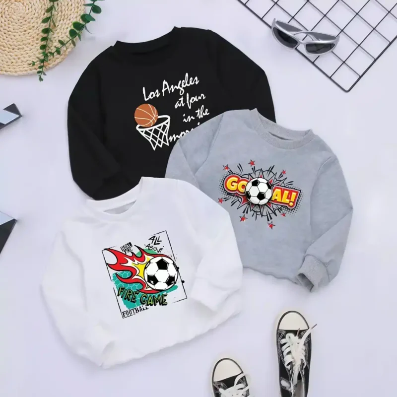 ✅ Pack of 3 Fire Game Goal Printed Sweatshirts for Young Kids