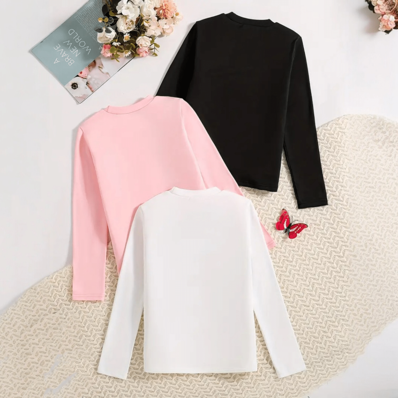Pack of 3 Happy Hearts Trio Printed Long Sleeve T-Shirts for Girls