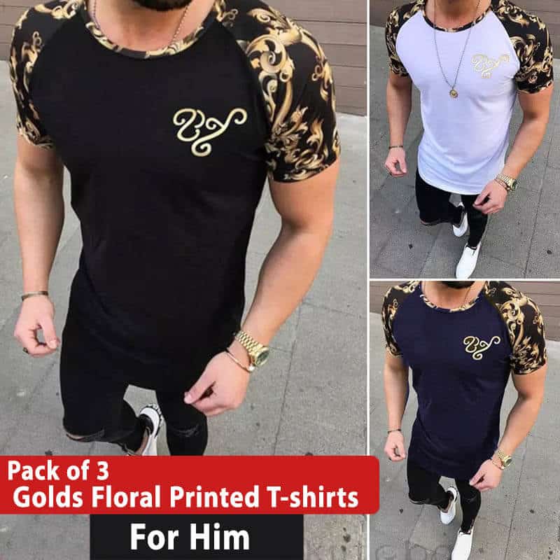 Get Pack of 3 Gold Floral Printed T-Shirts in just Rs 1099/- only