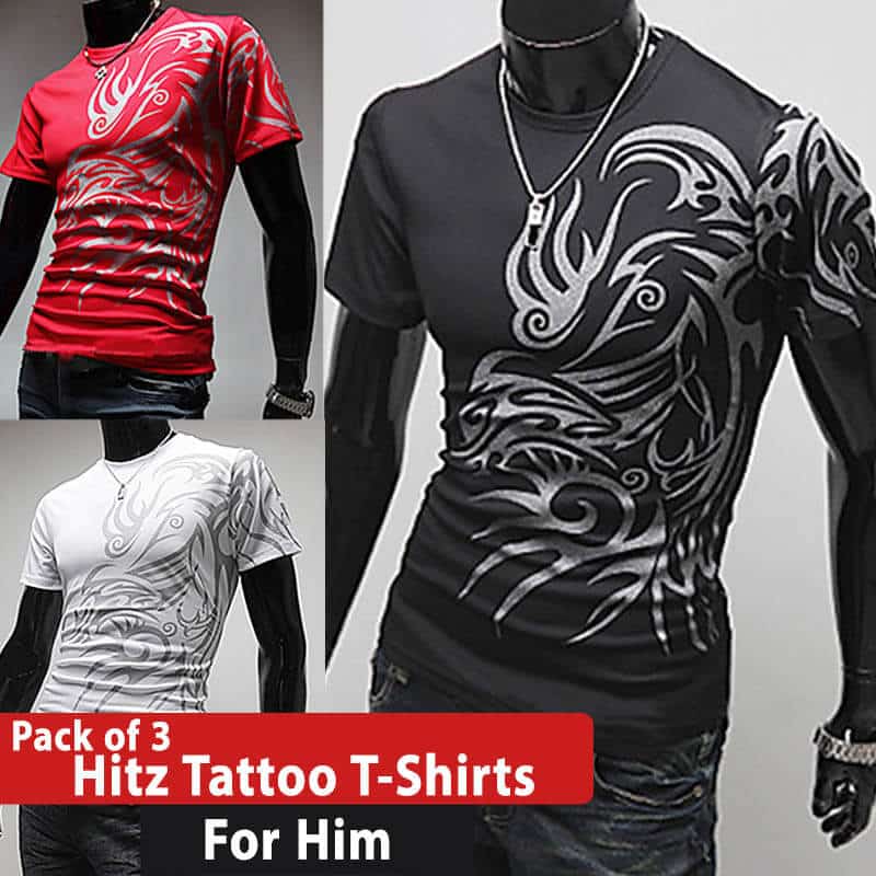 Get Pack of 3 Hitz Tattoo T-Shirts in just Rs 999/- only