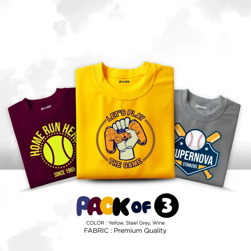 Pack of 3 Home Play Ball Printed Summer T-Shirts For Kids