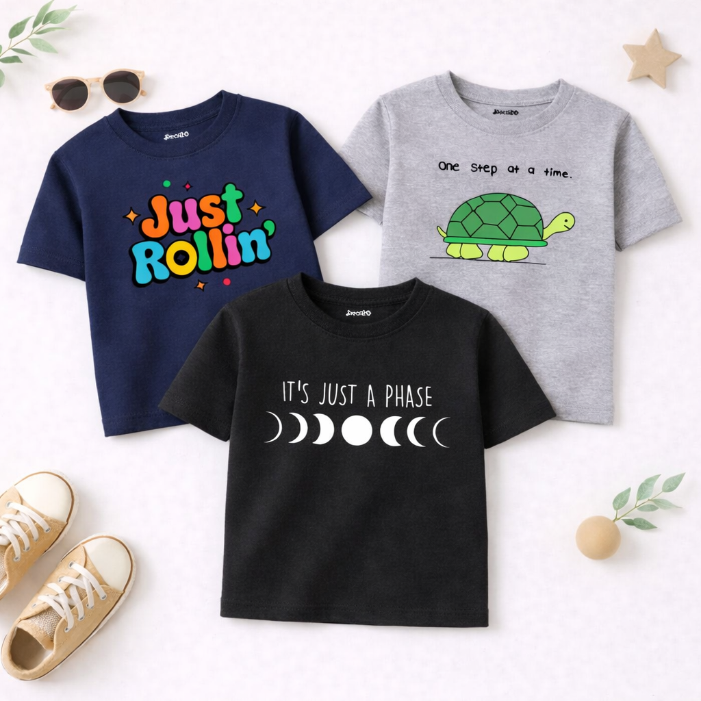 Upgrade your child’s wardrobe with our Pack of 3 Just Step Phase Printed T-Shirts For Boys today and enjoy the perfect fusion of fashion and functionality. Stay stylish.