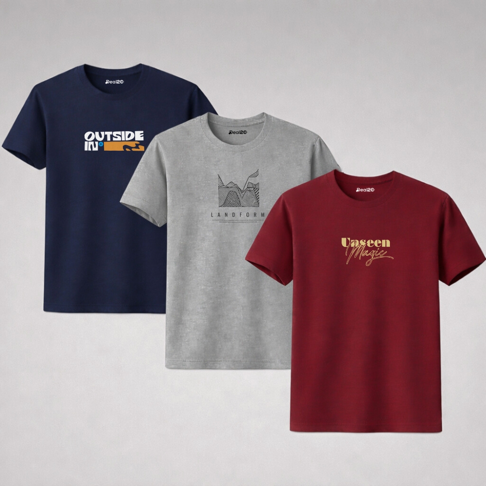Introducing our Pack Of 3 Landform Magic Mens Printed T-Shirts, designed for men who prefer clean, minimal style with everyday comfort. These t-shirts are perfect for a modern casual wardrobe, offering a balanced mix of simplicity, trend, and durability.