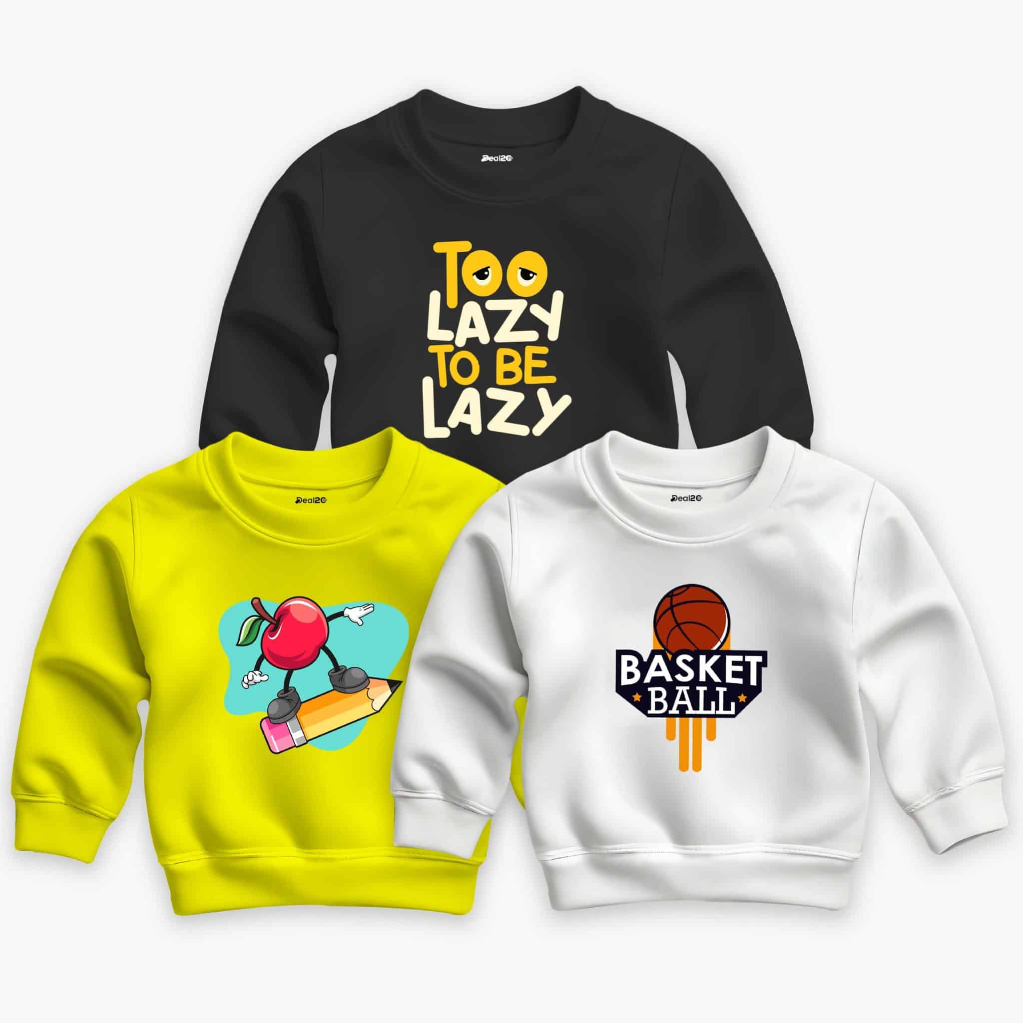 Pack of 3 Lazy Basket Printed Sweatshirt For Young Kids