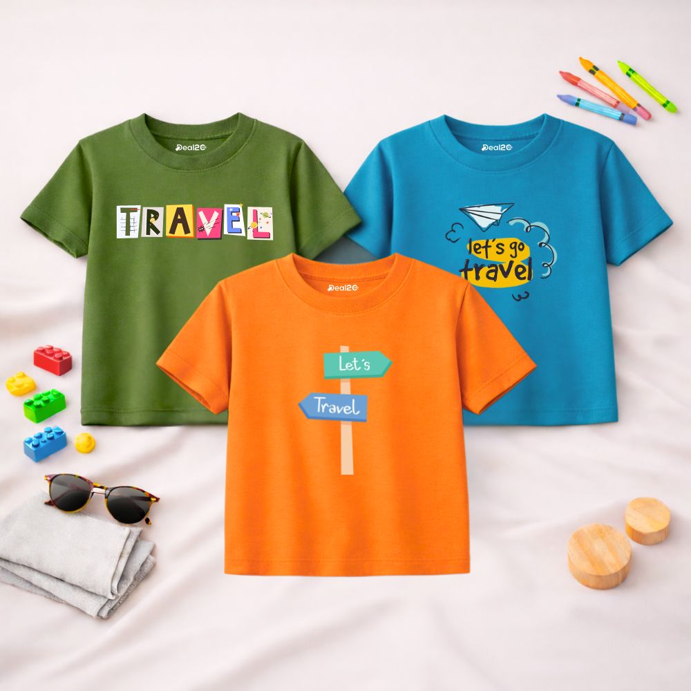 Upgrade your child’s wardrobe with our Pack of 3 Lets Trio Travel Printed T-Shirts For Boys today and experience the perfect fusion of fashion and functionality. Stay stylish.
