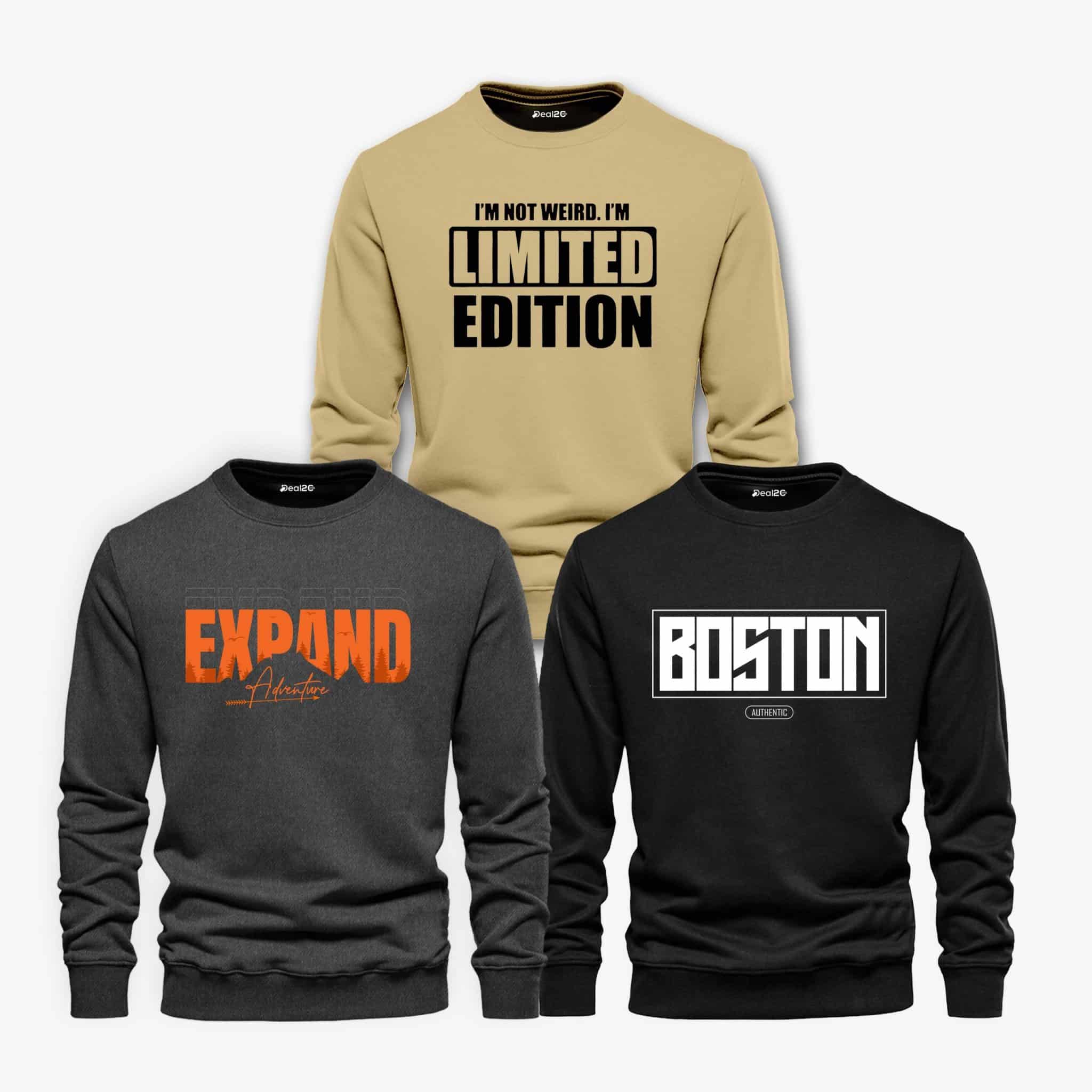 Pack of 3 Limited Boston Adventure Printed Sweatshirts For Men