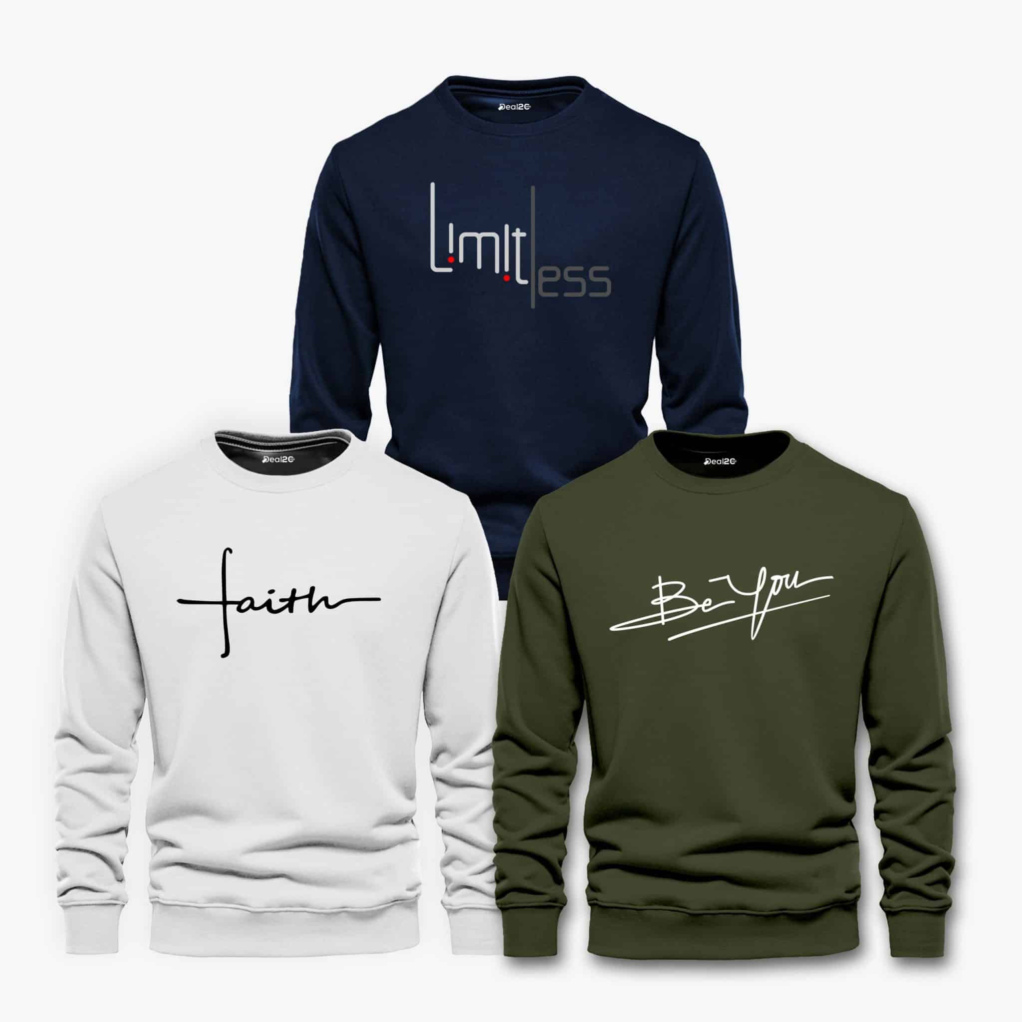 Pack of 3 Limitless Faith Printed Sweatshirts For Men