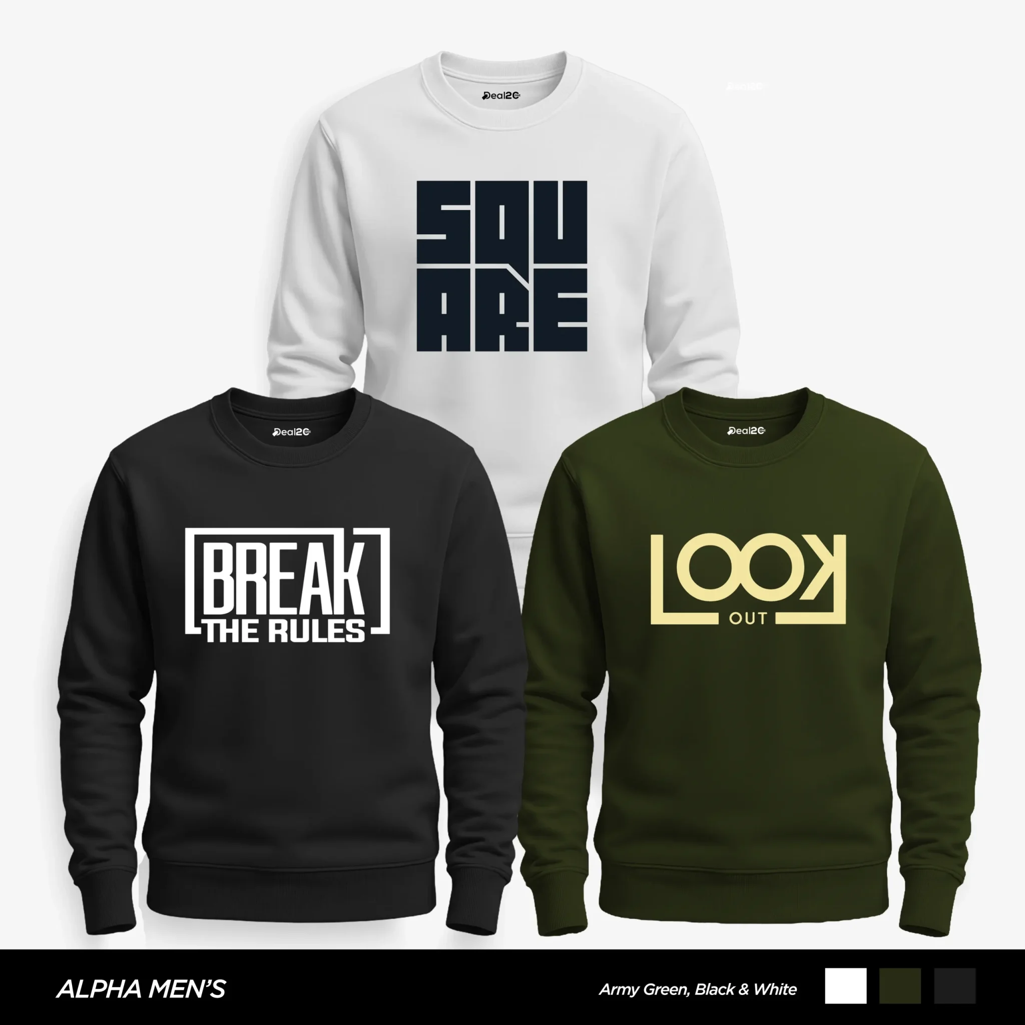 Pack of 3 Look Out The Rules Printed Sweatshirts for Men’s