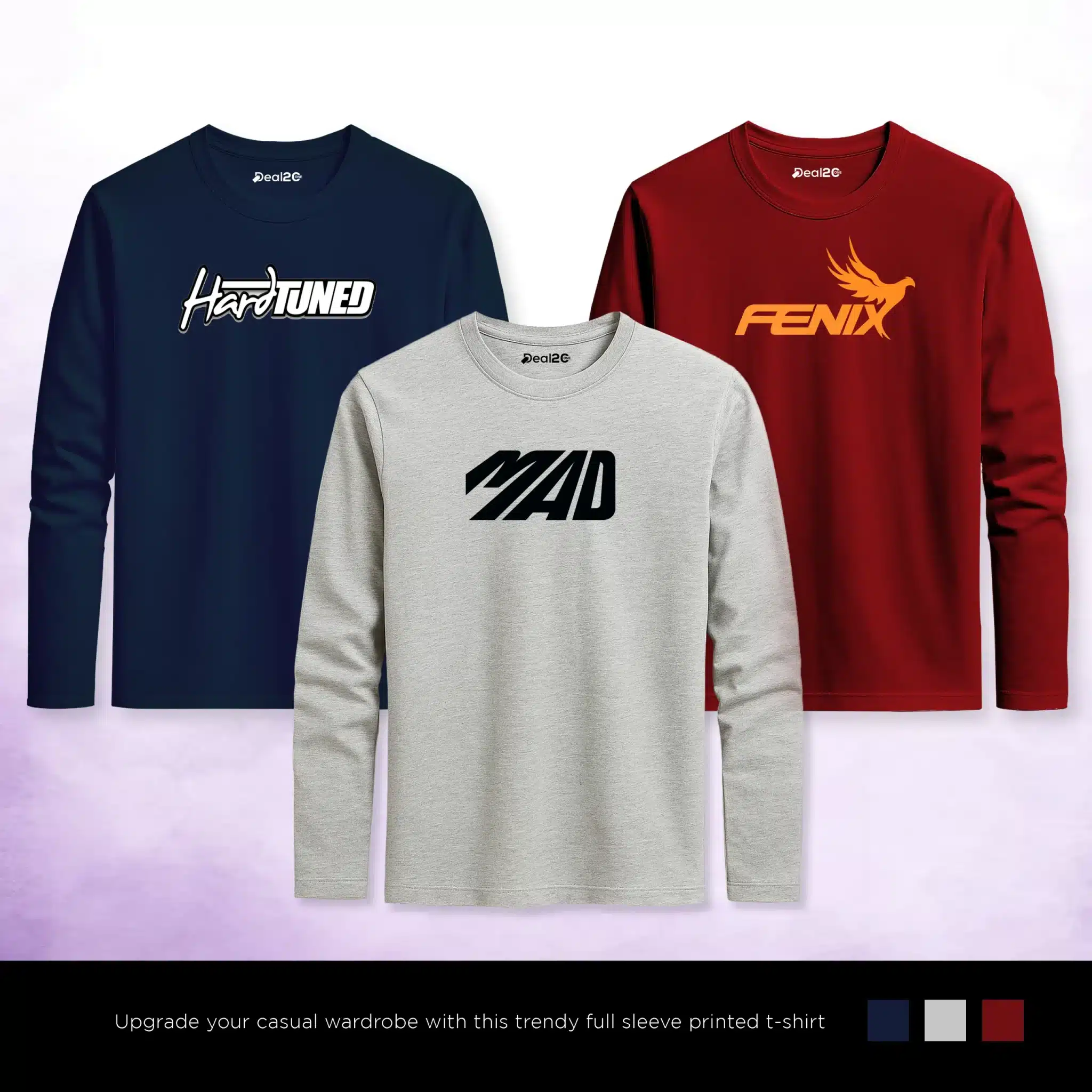 Pack of 3 MAD HARD FENIX Mens Printed Long Sleeves T-Shirts