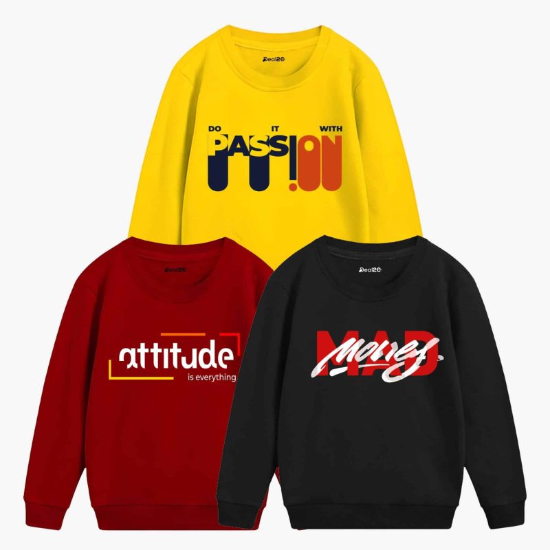 Pack of 3 Mad Passion Attitude Printed Sweatshirt For Tween Kids