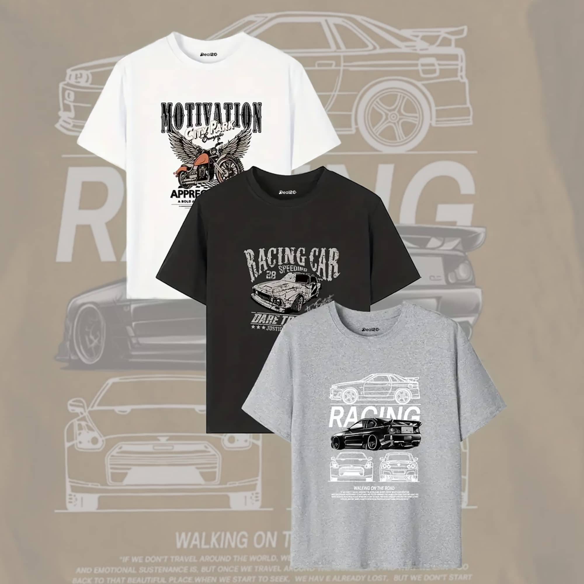 Pack of 3 Motivation Racing Car Printed T Shirts For Tween Kids