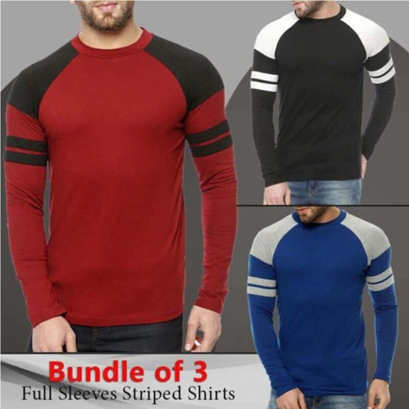 Get Pack of 3 Raglan Double Stripe Full Sleeves Shirts in just Rs 1099/- only